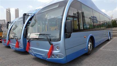 5輛電動公交車本周起將在青島316路線上亮相試運行