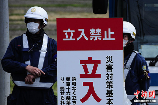 4月26日下午,日本福島縣南相馬市原町附近,警察在此設立哨卡禁止閑人進入,該哨卡位于福島第一核電站半徑20公里警戒圈處。中新社記者 侯宇 攝