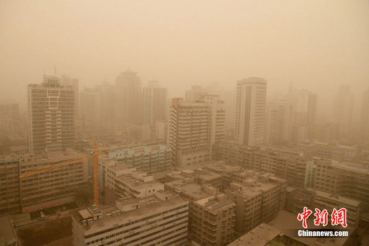 4月28日的甘肅蘭州還是艷陽(yáng)高照,29日清晨便迎來(lái)沙塵肆虐。甘肅省政府應(yīng)急辦發(fā)布消息,4月29日,甘肅酒泉、武威、嘉峪關(guān)、張掖、金昌、白銀、蘭州等市已出現(xiàn)沙塵暴。預(yù)計(jì)12小時(shí)內(nèi),上述地區(qū)沙塵暴仍將持續(xù),局部地方有強(qiáng)沙塵暴。賀雙建 攝