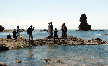 ????秦先生告訴記者,他曾是石老人村的村民,從有記憶起,就聽家里老人講關(guān)于“石老人”的傳說,兒時和小伙伴們在村頭玩耍時,抬頭就能看到屹立在遠處的 “石老人”,有時趁著退大潮,就會和伙伴們跑到“石老人”那里玩耍,在他美好的童年記憶中,滿是石老人的身影和故事。秦先生說,前些天他和孩子們到海邊散步,趁著退大潮,他一時興起,就帶著孩子們沿著礁石,走到了“石老人”的身邊,來了一次親密接觸。