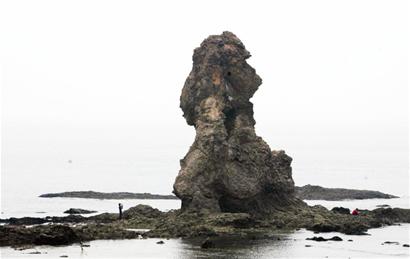 ????在青島嶗山午山腳下臨海斷崖南側(cè),距離岸邊百米處有一座17米高的石柱,形如老人坐在碧波之中,人稱“石老人”。老公公以手托腮,注目凝神,每天晨迎旭日,暮送晚霞,伴著潮起潮落,歷盡滄桑,不知度過了多少歲月。關(guān)于這塊奇石的傳說吸引了許多游人來此觀賞,然而度過了千年萬年,石老人在歲月中顯出了“老態(tài)”?!笆先孙L化嚴重,時不時往下掉石塊,真擔心長此以往,這處自然景觀將消失在海上?!弊蛉眨易魃降氖忻袂叵壬硎玖怂膿鷳n,他覺得這處獨一無二的景觀應(yīng)該進行保護。