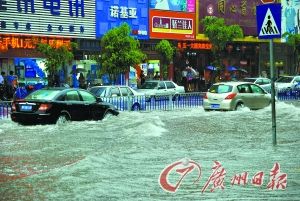 昨日,廣州黑云壓城,廣州市三防辦在18時20分掛起廣州市區(qū)暴雨黃色預警信號,18時50分更是發(fā)出廣州市區(qū)雷雨大風藍色預警信號。記者隨即巡城發(fā)現(xiàn),天河區(qū)海珠區(qū)雨點稀疏,沒有發(fā)生嚴重的內(nèi)澇;下雨的區(qū)域主要集中在荔灣區(qū)和白云區(qū),荔灣區(qū)一度刮起大風,有綠化樹被風吹斷;白云區(qū)則電閃雷鳴,形勢嚇人。幸運的是,昨日大雨并未像去年5月7日的暴雨造成城區(qū)嚴重的內(nèi)澇。
