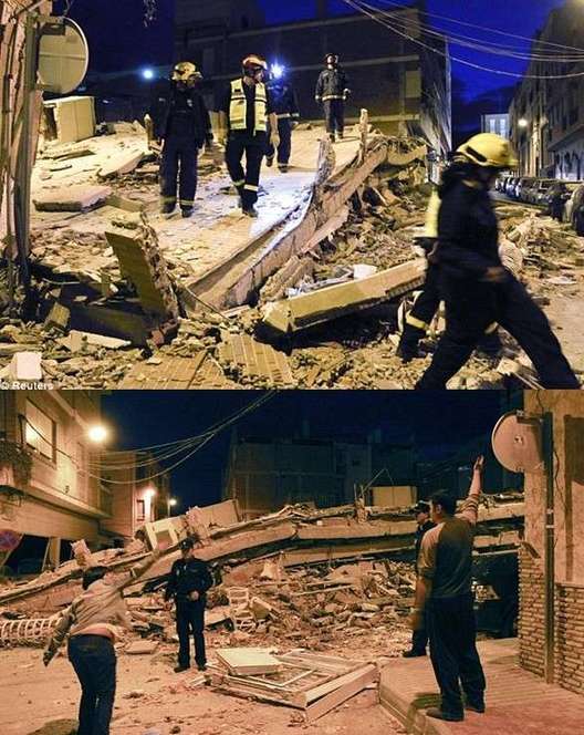 西班牙洛爾卡市當?shù)貢r間11日兩次遭地震襲擊,多處房屋倒塌。