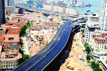 青島東西快速路三期實(shí)現(xiàn)橋面瀝青全線貫通