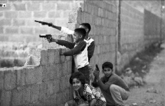 5月7日,巴基斯坦首都伊斯蘭堡附近的阿伯塔巴德市,幾名兒童在恐怖大亨本拉登的最后藏身處附近持塑料槍玩耍。拉登被擊斃后,他的支持者頻繁在巴基斯坦展開報(bào)復(fù)行動(dòng)。拉登之死,并未讓巴基斯坦的局勢(shì)平穩(wěn),一些部落和邊境地區(qū)的恐怖勢(shì)力遠(yuǎn)未被清除。