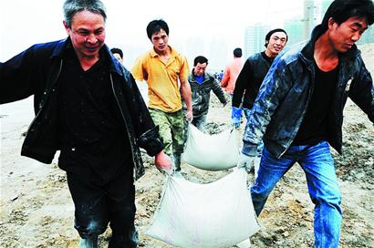 昨日清晨6時(shí)許,受東南風(fēng)浪涌及高潮期影響,青島膠南窩洛子河入??谒槐绕綍r(shí)漲了1米多,導(dǎo)致海水大量倒灌,淹了太平洋夢(mèng)時(shí)代廣場(chǎng)的百畝建筑工地。事發(fā)后,膠南積米崖港區(qū)相關(guān)部門(mén)人員及駐港官兵及時(shí)趕到現(xiàn)場(chǎng)組織搶險(xiǎn),經(jīng)過(guò)4個(gè)小時(shí)的奮戰(zhàn),百名警民合力將缺口堵住。目前,具體經(jīng)濟(jì)損失仍在統(tǒng)計(jì)中。(記者 劉海龍 攝)