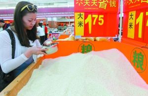 ????5月2日,沃爾瑪超市一顧客在選購大米。目前,超市所售大米的標(biāo)簽上很少注明添加物。