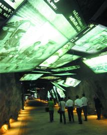 除了負(fù)一層餐飲風(fēng)味小吃區(qū),地景大道還有一處專門體現(xiàn)青島本土人文風(fēng)情、觸摸歷史的地方。這個(gè)時(shí)空隧道是由原先一條空間與長度比較特殊的偏道改造而成,外地游客可以通過這些老照片了解青島建置一個(gè)多世紀(jì)以來的市井風(fēng)情與歷史文化,本市居民也能在這里找到貼切的懷舊情結(jié)。