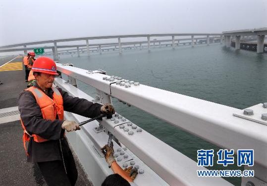 ????新華網青島7月5日電(記者 蘇萬明)青島膠州灣大橋相關方面5日接受新華社記者專訪時稱,膠州灣大橋目前已經具備通車條件,護欄等一些附屬工程建設現狀并不違反相關文件規(guī)定要求,在通車后仍會繼續(xù)完善。