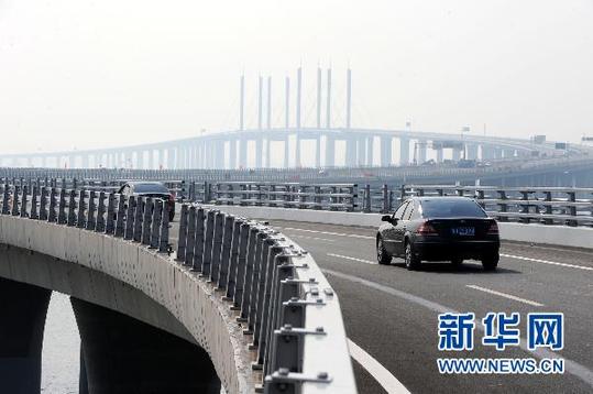 6月27日,汽車在膠州灣大橋上行駛。 新華社記者 李紫恒 攝