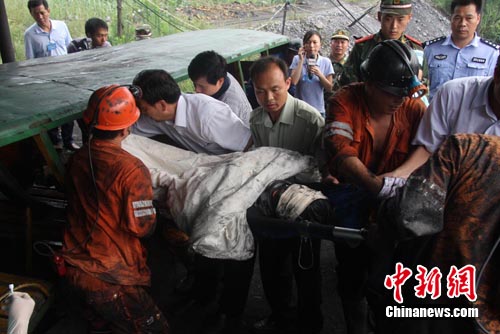 上午8時40分,載著生還礦工的運載車終于從礦井口緩緩升上來,等候在井口的人們立即圍了上去。被救上來的礦工身上蓋著棉被,眼睛上戴著眼罩,整個臉上都是一層黑色的煤灰,微微張開的嘴里露出的牙齒顯得更加潔白。救援人員輕輕地從運載車上將生還礦工抬放到擔架上。在武警官兵的護衛(wèi)下,救援人員將生還礦工從礦井口抬上了早已等候在現(xiàn)場的救護車。醫(yī)護人員立即對礦工進行了簡單的檢查治療后,救護車載著生還礦工向合山市人民醫(yī)院駛?cè)?。?jù)了解,合山市人民醫(yī)院已經(jīng)做好了接診施救準備,獲救礦工一到達醫(yī)院后就可以馬上開始搶救。