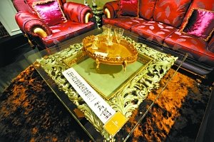 一張達(dá)芬奇品牌的茶幾被廣州工商部門貼上封條。 本報(bào)記者莫偉濃/攝