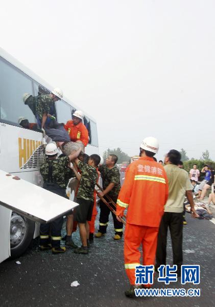 7月17日,救援人員在京沈高速盤錦段交通事故現(xiàn)場搶救乘客。新華社發(fā)