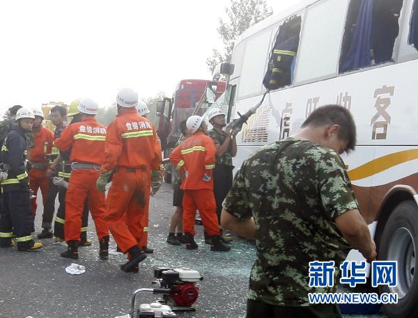 7月17日,救援人員在京沈高速盤錦段交通事故現(xiàn)場(chǎng)搶救乘客。新華社發(fā)