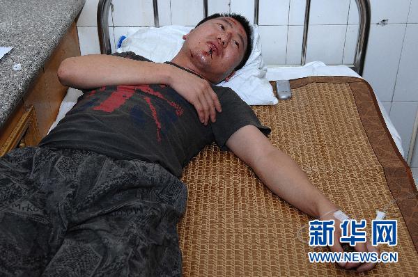 7月17日,一名受傷乘客正在醫(yī)院接受治療。新華社記者潘昱龍