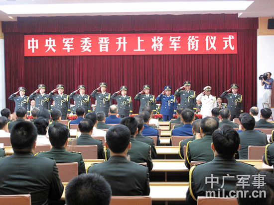 資料圖:2010年7月19日,中央軍委在北京八一大樓隆重舉行晉升上將軍銜儀式。