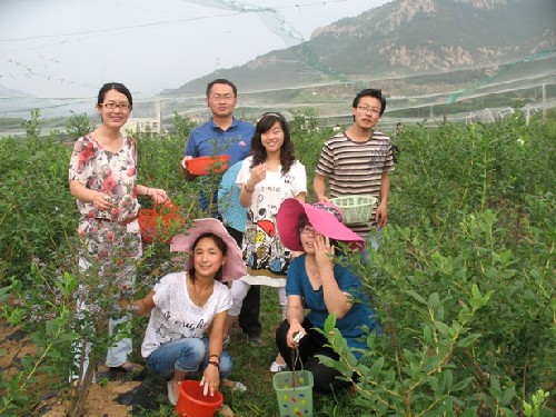????進(jìn)入七月底,青島周邊地區(qū)的藍(lán)莓采摘節(jié)大部分已結(jié)束,但嶗山藍(lán)莓采摘節(jié)還在進(jìn)行中,進(jìn)入嶗山藍(lán)莓生態(tài)園的游客還能盡情的采食藍(lán)莓。據(jù)嶗山藍(lán)莓生態(tài)園的技術(shù)總監(jiān)孫偉清介紹說(shuō),嶗山藍(lán)莓種植在山地梯田上,山坡高低差異致使氣溫不同而導(dǎo)致藍(lán)莓的成熟速度不同。再加上早、晚熟品種的搭配,嶗山藍(lán)莓采摘節(jié)可持續(xù)兩個(gè)月左右的時(shí)間。山地的有機(jī)質(zhì)及微量元素含量要高于平地,所以山地種植的水果普遍比平地種植的水果口感要好,營(yíng)養(yǎng)價(jià)值也高。