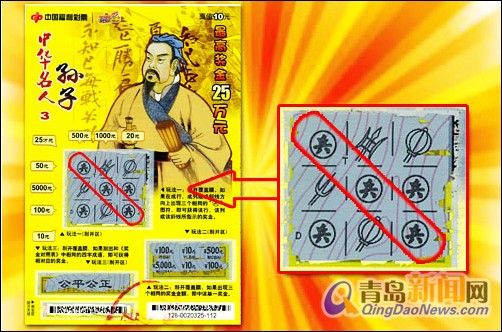 ????張先生是位年輕的彩友,平時經(jīng)常會買點彩票碰碰運氣,對“刮刮樂”更是有濃厚的興趣。22日那天,張先生偶然聽說37020924投注站以 前中出過大獎,而且還是“五福臨門”的15萬大獎,張先生覺得這是個福地,所以便到站內(nèi)買了幾張彩票試試運氣,看到站內(nèi)在銷售“中華名人3”,張先生便花10元錢買了一張,刮開后發(fā)現(xiàn)中了10元錢,有些不甘心的他又把獎金換購了一張“中華名人3”,令他沒有想到的是,這次一下就擊中了25萬元的頭獎。張先生高興的說,自己高興的一晚上沒睡著覺,這不,第二天一大早,便來申領(lǐng)了大獎。