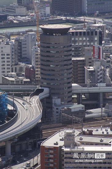 關(guān)于阪神高速公路,網(wǎng)上最為有名的恐怕非下圖所示的一條高速公路從一棟高樓中間穿堂而過(guò)的經(jīng)典案例莫屬。