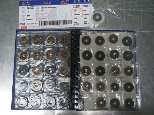 ????青島機(jī)場(chǎng)安檢部門在國(guó)際安檢通道執(zhí)行安檢任務(wù)時(shí),X關(guān)機(jī)操機(jī)員發(fā)現(xiàn)一旅客行李中呈現(xiàn)大量疑似陶器、字畫圖像,便迅速通知開箱包檢查員攔截該行李的所有人,并進(jìn)行開箱檢查,在其行李內(nèi)查獲古錢幣180枚、燕明刀幣3枚、名貴字畫4幅、陶器7件、民國(guó)紙幣20張。
