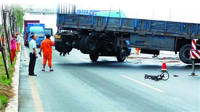 ????記者在現(xiàn)場看到,一輛18.5米長的解放平頭拖掛車側(cè)翻,車頭向南側(cè)翻在南向北的行車道上,拖掛車頭前擋風(fēng)玻璃和右側(cè)車窗破碎,玻璃碎片散落一地,車廂擋板也扭曲變形。在拖掛車的車廂內(nèi)裝載著大大小小的紙箱,包括文具、乒乓球拍、洗衣粉等多種生活用品,其中大部分紙箱散落到行車道上。在拖掛車后方馬路中間,大概有30多米長的綠化帶和柵欄被拖掛車碾過,留下一地狼籍。記者在現(xiàn)場采訪時,交警已經(jīng)聯(lián)系了兩輛重型吊車趕到現(xiàn)場,與此同時在北向南車道上,另外一輛拖掛車已經(jīng)趕到現(xiàn)場,10多名工作人員正在交警的指揮下,用了1個多小時的時間,將散落一地的貨物轉(zhuǎn)運到旁邊的拖掛車上。到上午9時左右,全部貨物被清運完畢。交警指揮工作人員給側(cè)翻拖掛車綁上鋼絲繩,用重型吊車將拖掛車從地上吊起,為了保證過往車輛的安全,交警將環(huán)灣大道南向北車道該路段完全封閉,禁止一切車輛通行,直到40多分鐘后,拖掛車被吊到旁邊的一輛大型拖車上運離現(xiàn)場。交警仍然留在現(xiàn)場指揮。 原因 雨天路滑+疲勞駕駛 記者在現(xiàn)場了解到,車禍發(fā)生在凌晨3時左右,當時這輛滿載生活用品的物流拖掛車從臨沂連夜趕往島城送貨,當拖掛車沿著北向南車道即將駛?cè)胧袇^(qū)時,車輛突然失控,車頭沖進了馬路中間的綠化帶內(nèi),行駛了30多米后,闖到了逆行車道上,可能因為拖掛車上貨物太多,拖掛車失去平衡側(cè)翻橫在馬路上,幸好當時逆行車道上沒有其他車輛,否則后果不堪設(shè)想。