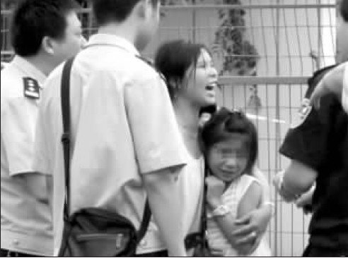 案發(fā)現場附近,媽媽抱著剛剛遭遇劫持的女兒。據揚子晚報