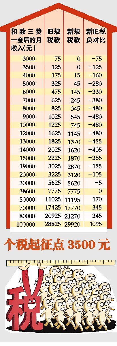 新修訂的《個人所得稅法》及其實施條例今日起正式施行。修改后的個稅法將現(xiàn)行的工資、薪金所得費(fèi)用扣除標(biāo)準(zhǔn)即坊間所稱的“起征點”從每月2000元提高到3500元,這意味著月工資、薪金所得在3500元以下的群體將不涉及個稅。