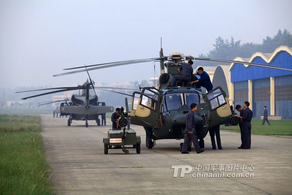資料圖:成都軍區(qū)新型武直-9在做最后檢查。