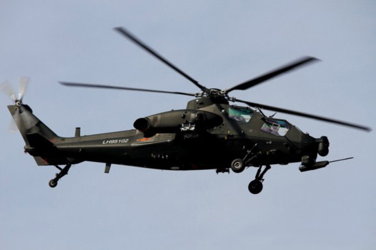 資料圖:中國武直-9直升機(jī)對(duì)地面目標(biāo)實(shí)施攻擊。