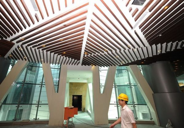 9月5日,工作人員在江蘇江陰華西村“新農(nóng)村大樓”內(nèi)緊張施工。張立偉