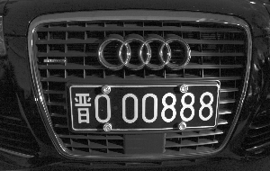 打人司機(jī)車輛被攔。前晚,在海淀區(qū)西山華府小區(qū)門口,一對業(yè)主夫妻在開車剛要拐入小區(qū)南門時,因減速遭到后面一輛無照寶馬和一輛牌照為晉O00888的奧迪司機(jī)毆打。夫妻頭部被打流血。兩打人者欲逃離被控制。經(jīng)核實,寶馬司機(jī)15歲,無駕照,系著名歌唱家李雙江之子?!皶xO”車牌為套牌。本報記者浦峰 攝