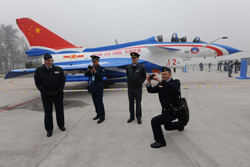 2009年11月,外國軍官集體參觀殲-10等中國新型戰(zhàn)機(資料圖)