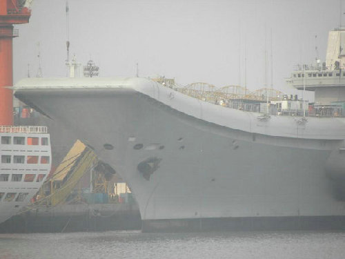 資料圖:瓦良格航母艦首清晰可見。