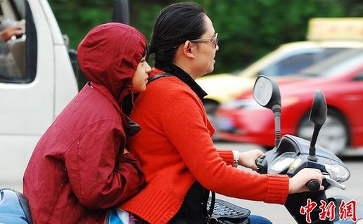 在江西九江市街頭,市民穿上秋衣在寒風(fēng)中出行。隨著較強(qiáng)冷空氣不斷南下,從9月18日開(kāi)始,中國(guó)南方大部地區(qū)氣溫出現(xiàn)大幅下降,四川、湖南、江西等多省累積降幅將超10℃,局地達(dá)15℃左右。此次大幅降溫或?qū)е陆现斜辈砍霈F(xiàn)寒露風(fēng),這對(duì)近期正處抽穗揚(yáng)花期的晚稻產(chǎn)生不利影響。據(jù)了解,此次冷空氣的影響會(huì)一直持續(xù)到22日。