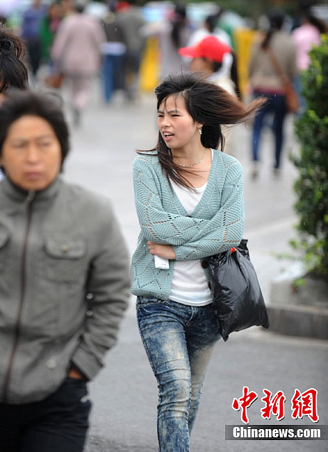 9月19日,受一股強(qiáng)冷空氣影響,江蘇揚州大幅降溫,最高降溫達(dá)20℃,并伴有4-5級大風(fēng),突然的降溫讓出行的市民感受到“一日之秋”,外出的市民紛紛身著秋裝秋裝御寒,瑟瑟秋風(fēng)令人們感受到了秋日的寒冷,據(jù)揚州氣象臺預(yù)測未來三天最低氣溫降至12℃左右。圖為街頭行人紛紛換上了秋裝全副武裝抵御秋寒。中新社發(fā) 孟德龍 攝 圖片來源:CNSPHOTO
