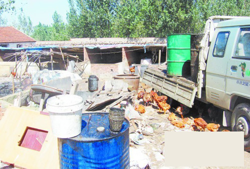 記者沿著養(yǎng)殖場(chǎng)東面的圍墻向北走,發(fā)現(xiàn)院子里的兩輛小貨車上載著一些盛滿東西的大桶。在養(yǎng)殖場(chǎng)北部,一群豬躺在滿是臟水的豬舍里,身上沾滿污泥。不久,即墨市公安局110民警聞?dòng)嵹s到。民警發(fā)現(xiàn),那兩輛小貨車上載著從別處收來(lái)的剩菜剩飯,由于時(shí)間長(zhǎng)了發(fā)出一股酸臭味。