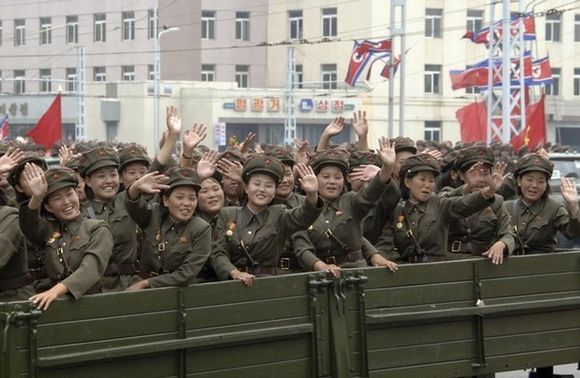 資料圖:朝鮮閱兵式上的女兵。
