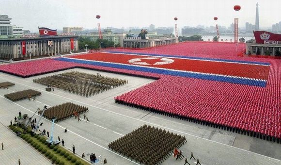 資料圖:朝鮮閱兵式盛大的方陣。