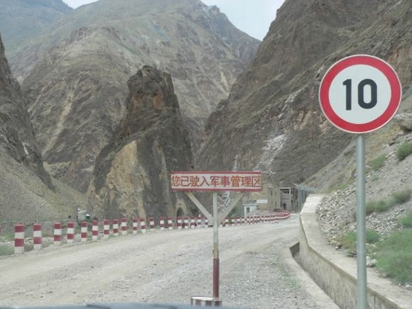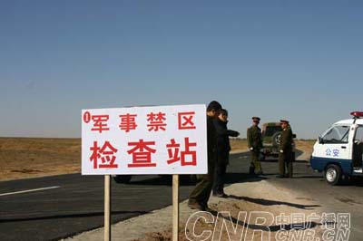 資料圖:為了保證神七順利發(fā)射,各個(gè)路口都設(shè)置了“軍事禁區(qū)”的警示標(biāo)志。