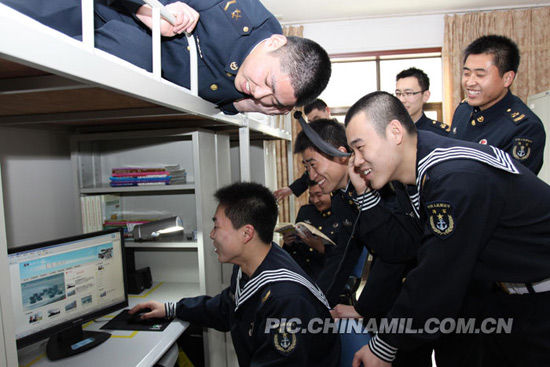 資料圖:解放軍士兵在軍營上局域網(wǎng)學(xué)習(xí)交流。
