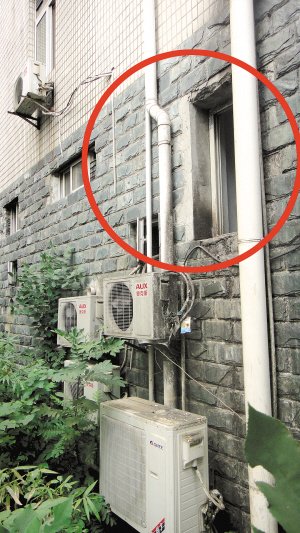 嫌犯就是從這里跳窗的。