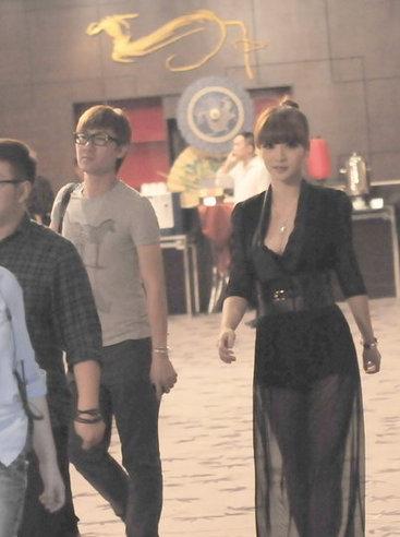 柳巖穿黑色透視裝露爆乳 稱不要看我胸(圖)