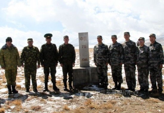 ????中方邊防部隊(duì)代表為新疆喀什軍分區(qū)參謀長(zhǎng)陸鳳彬,塔方代表為莫爾加布段邊防副代表納扎波夫中校。新疆喀什軍分區(qū)參謀長(zhǎng)陸鳳彬介紹,在漫長(zhǎng)的中塔邊界線上,領(lǐng)土的爭(zhēng)議已不復(fù)存在,這是熱愛和平的中塔兩國(guó)人民的共同愿望。