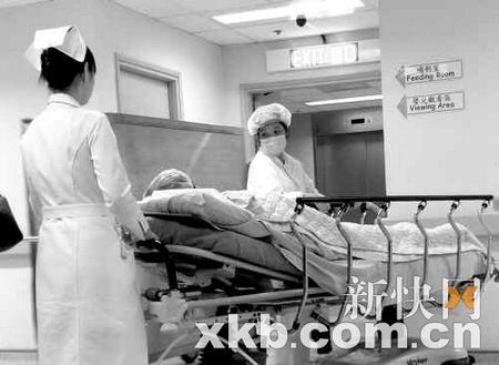 香港私立圣德肋撒醫(yī)院內(nèi),一名產(chǎn)婦正被推進(jìn)產(chǎn)房待產(chǎn)。