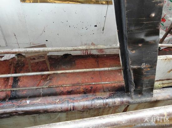 船上彈痕累累,血跡斑斑。