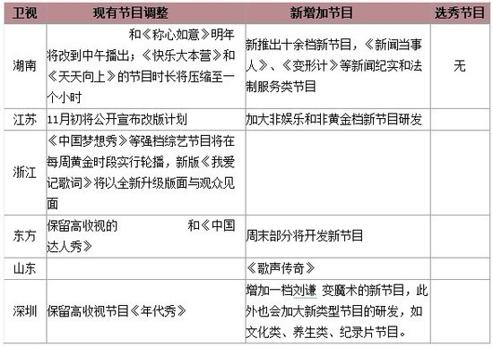 除了湖南衛(wèi)視,各大衛(wèi)視也都在緊張進(jìn)行節(jié)目調(diào)整。