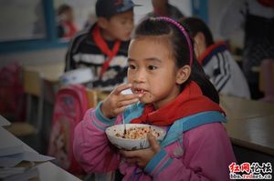山區(qū)學(xué)生辣椒拌飯作午餐 1勺辣椒1口飯省著吃
