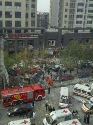 西安高新區(qū)一門面房爆炸 公交站牌被炸飛(圖)