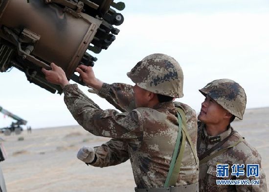 蘭州軍區(qū)某新型遠程火箭炮部隊的官兵以高昂的士氣和過硬的軍事技能,在茫茫大漠上打響了新裝備接裝后的第一炮。