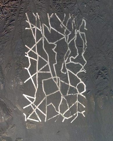 資料圖:該圖像中心區(qū)域有飛機和卡車活動跡象,距離中國酒泉衛(wèi)星發(fā)射基地不到100英里。